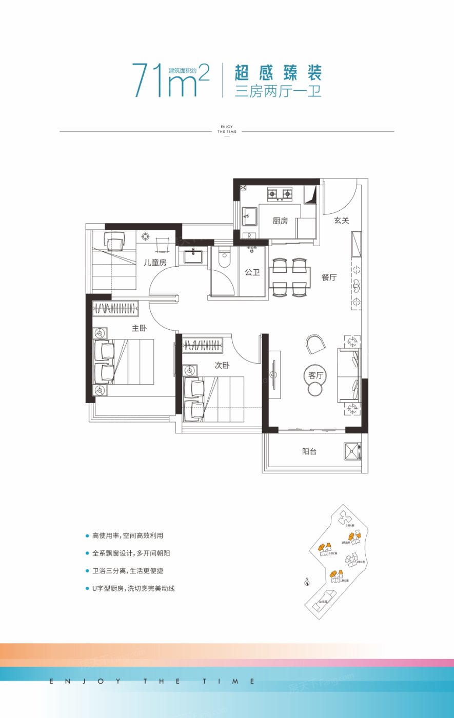 这个楼盘有71-81㎡两种户型可选,主力是三居室,整体设计比较实用。房间布局不错,采光和通风都挺好,没什么多余浪费的空间。建议去样板间实地感受一下,毕竟选房子是长期生活的大事,位置和户型都很重要,按自己需求来定就好。