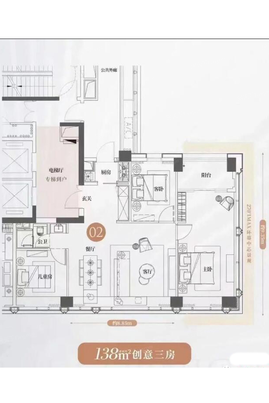 138㎡户型 3室2厅1厨2卫 138.00㎡