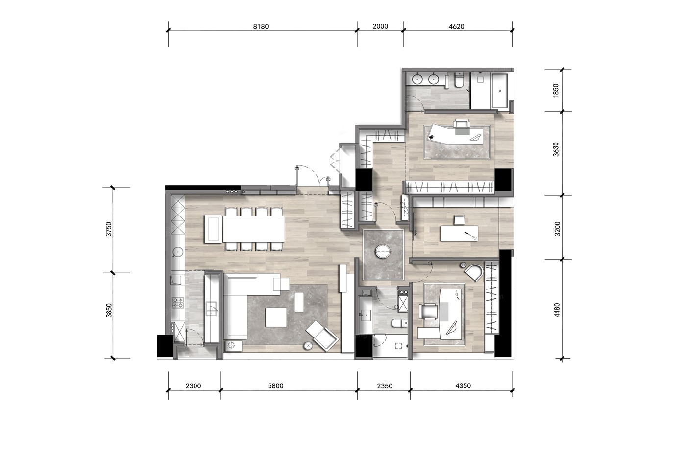 E-169㎡三室两厅两卫 3室2厅1厨2卫