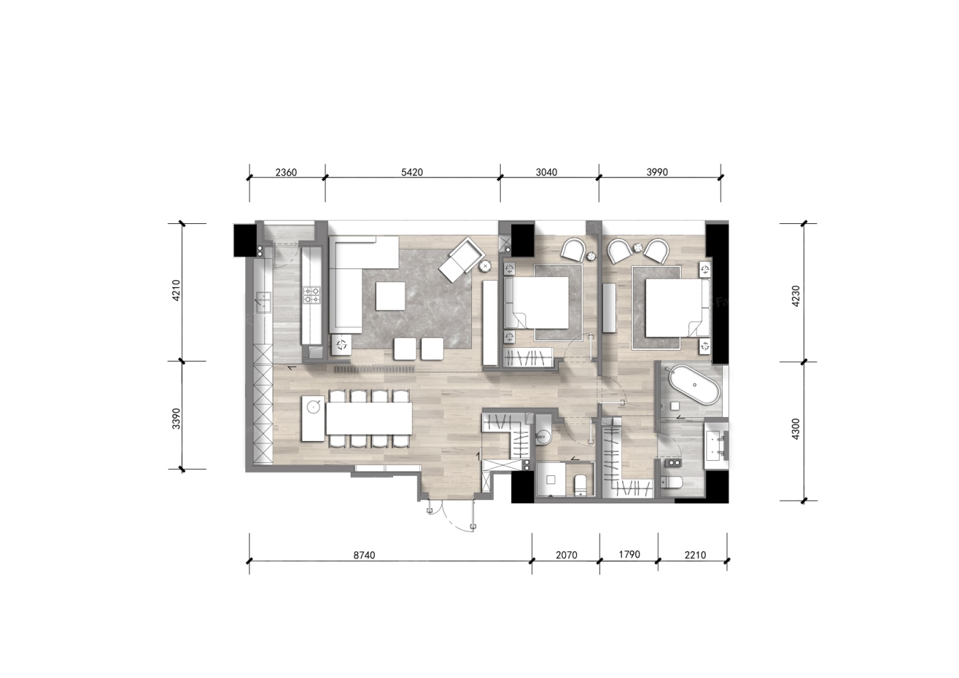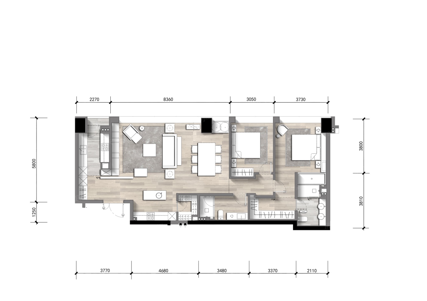 C-155㎡两室两厅两卫 2室2厅1厨2卫