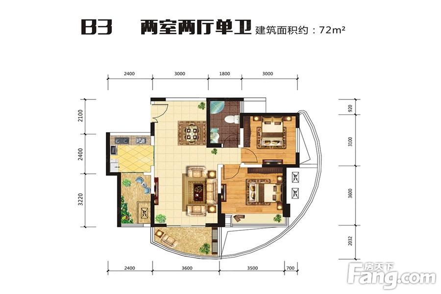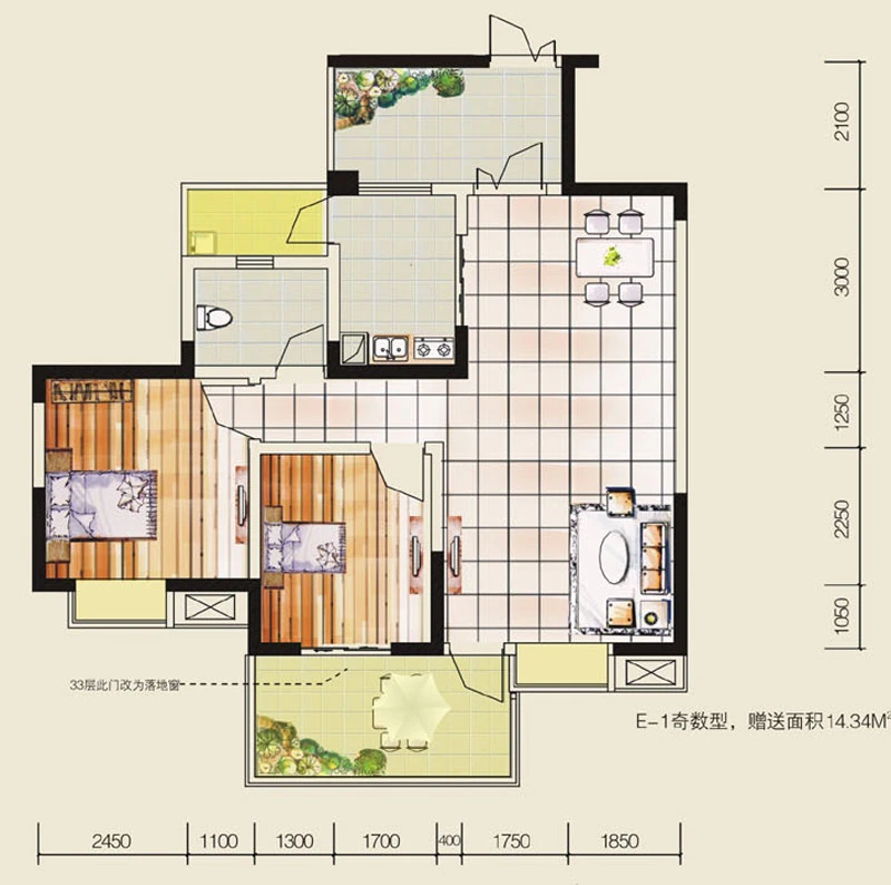 二期5、6号楼奇偶层E-1户型【售罄】 2室2厅1厨1卫