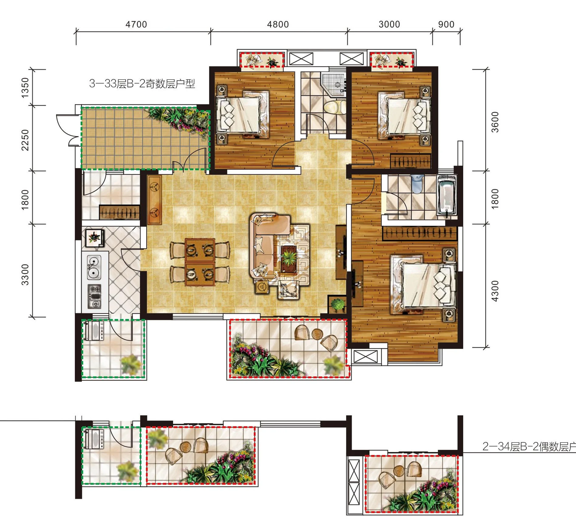 二期5、6号楼偶数层E1-4/E4户型【售罄】 3室2厅1厨2卫