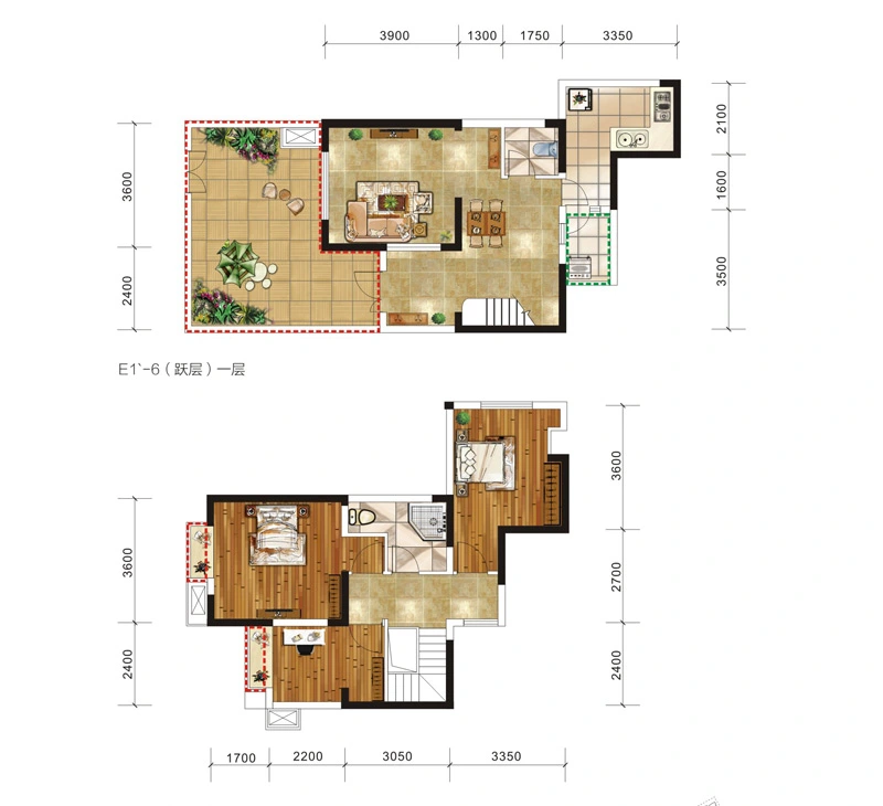 一期一号楼偶数层E1-3户型【售罄】 3室2厅1厨2卫