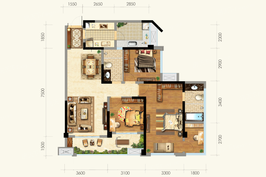 3/4/6/7#A1户型 3室2厅1厨2卫