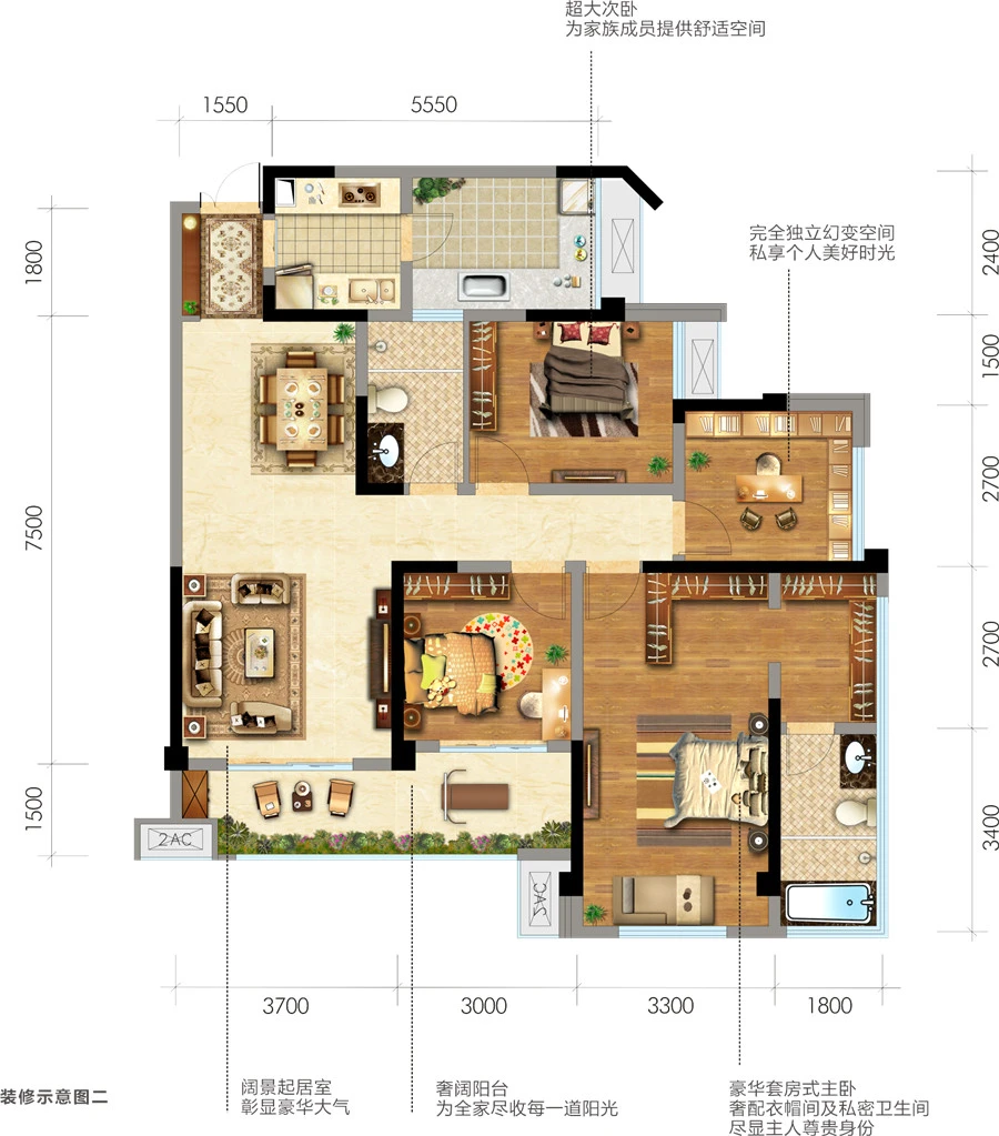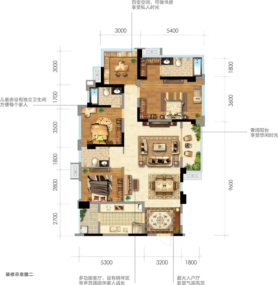 9-11栋标准层D2户型 4室2厅1厨3卫