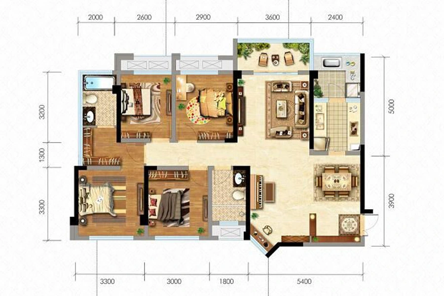 1/3/4/6/7栋标准层C1户型 4室2厅1厨2卫