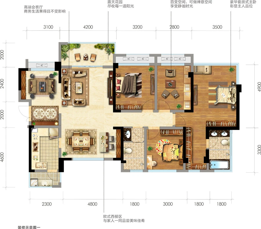 9-11栋标准层D1户型 4室3厅1厨2卫