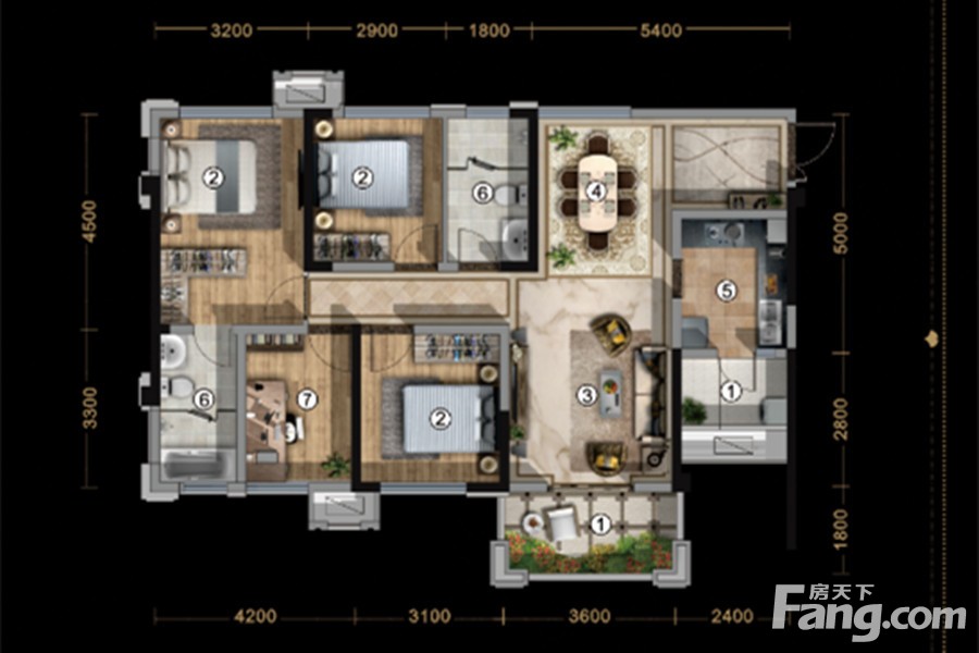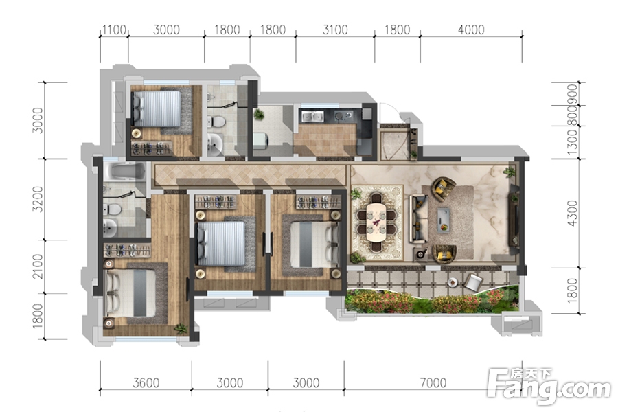 3/4#D户型 4室2厅1厨2卫