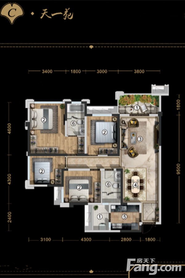 1/8#C户型 4室2厅1厨2卫