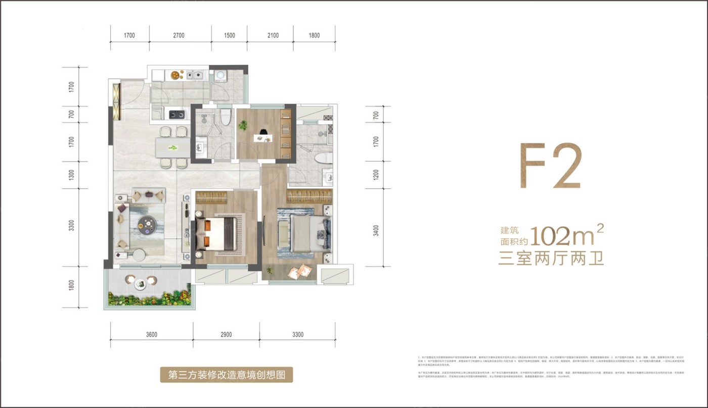 F2户型 3室2厅1厨2卫