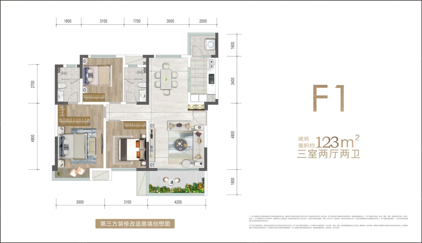 F1户型 3室2厅1厨2卫