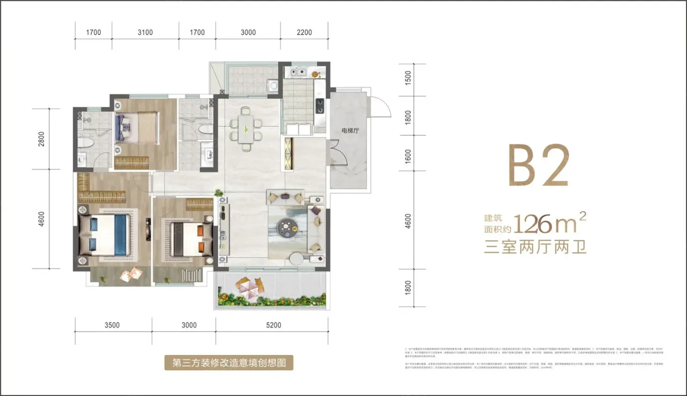 B2户型 3室2厅1厨2卫