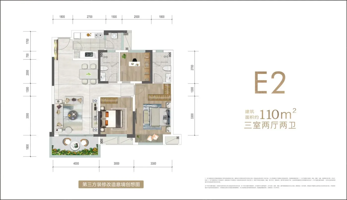 E2户型 3室2厅1厨2卫