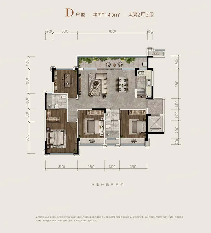 D户型 4室2厅1厨2卫