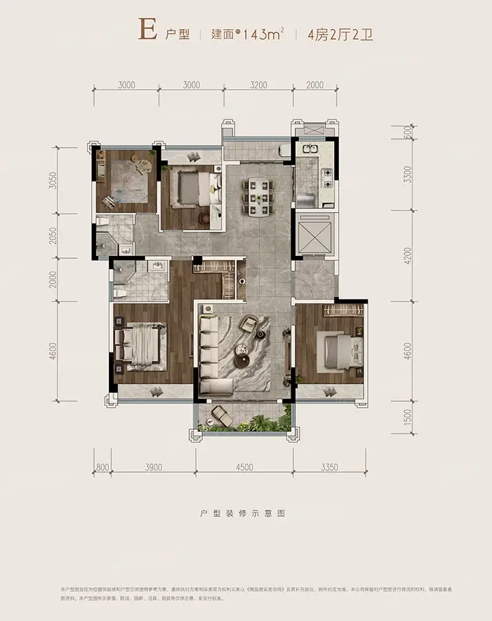 E户型 4室2厅1厨2卫