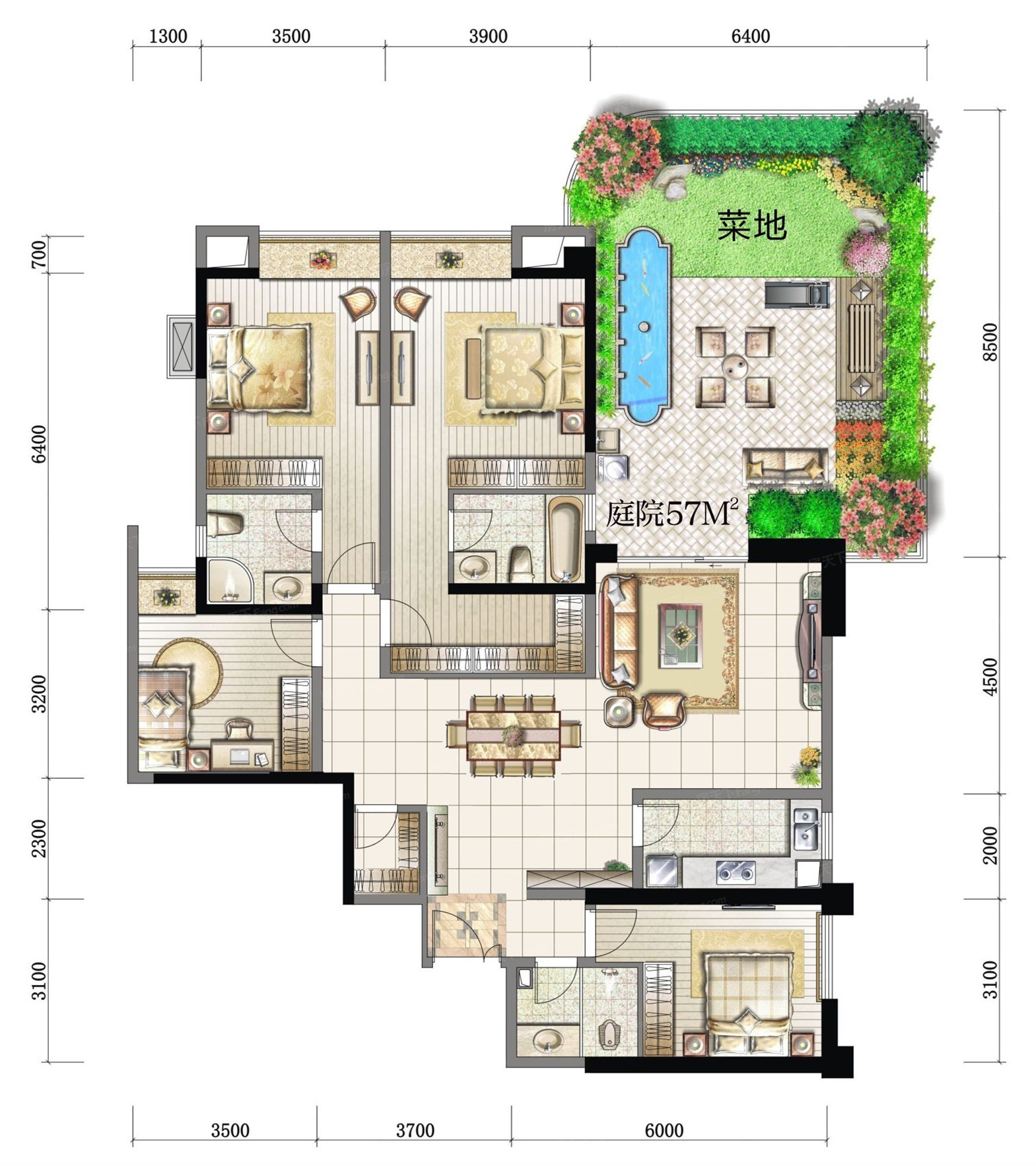 3/4/8#F2户型 4室2厅1厨3卫